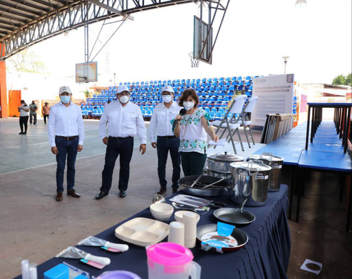 También, el titular de la Sedesol corroboró la entrega de equipamiento del Programa de Escuelas de Tiempo Completo a planteles de este municipio, en donde se equipó a 2 colegios del municipio dentro de este esquema, con una inversión de casi 25 mil pesos. Estos planteles se equiparon con material de protección civil, equipo de supervisión para los alimentos, artículos de limpieza, baterías de enseres de cocina, mobiliario, mesas, sillas, entre otros
