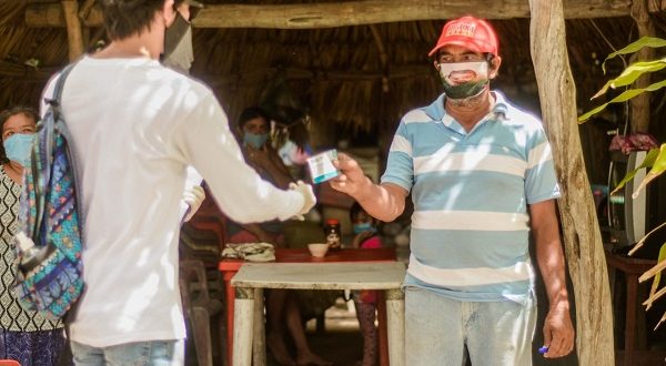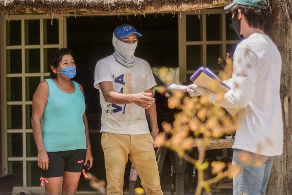 Las brigadas que se encargan de entregar los apoyos económicos lo hacen siguiendo los protocolos sanitarios pertinentes, como utilizar el cubrebocas, guantes y guardando la sana distancia con los beneficiarios para así garantizar que la entrega del recurso se haga de forma sana y segura.