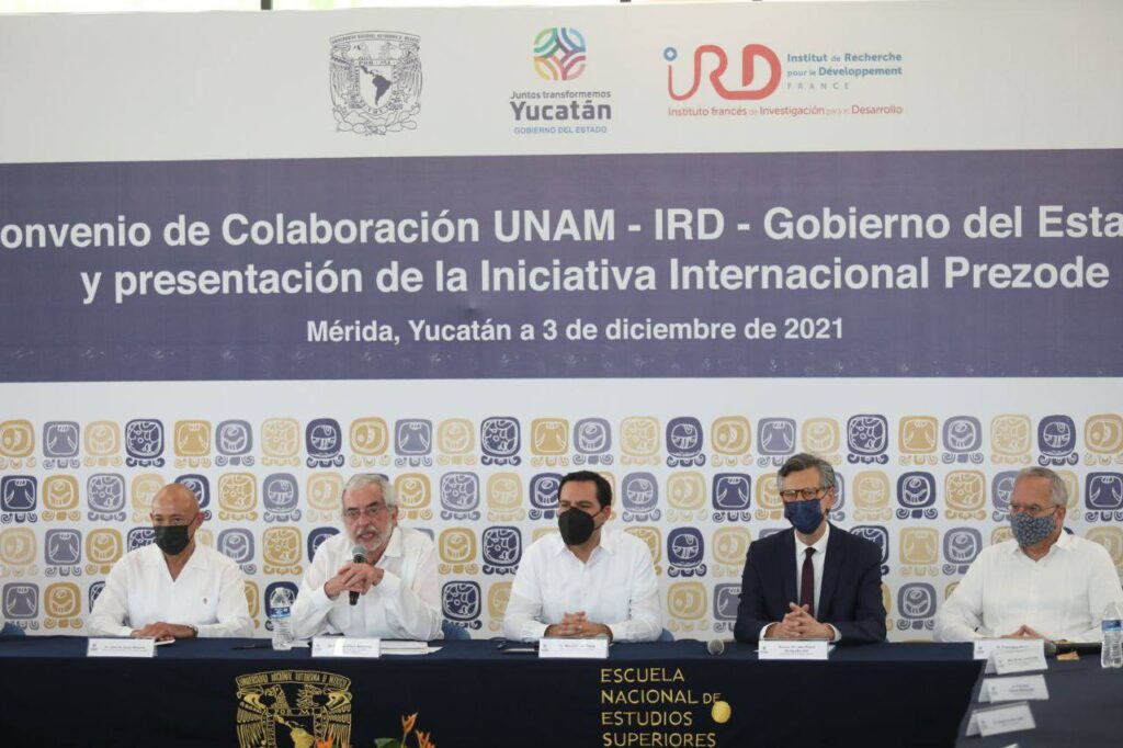 El Gobernador Mauricio Vila Dosal; el rector de la UNAM, Enrique Graue Wiechers, y el embajador de Francia en México, Jean Pierre Asvazadourian, firmaron convenios de colaboración para estos fines, dentro de la iniciativa Prozode, y también para el establecimiento en Yucatán de un Laboratorio Mixto de Investigación, denominado “Eldorado”, que se centrará en investigaciones científicas sobre la interacción del hombre con el ecosistema y sus efectos.
