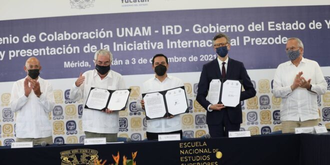 El Gobernador Mauricio Vila Dosal; el rector de la UNAM, Enrique Graue Wiechers, y el embajador de Francia en México, Jean Pierre Asvazadourian, firmaron convenios de colaboración para estos fines, dentro de la iniciativa Prozode, y también para el establecimiento en Yucatán de un Laboratorio Mixto de Investigación, denominado “Eldorado”, que se centrará en investigaciones científicas sobre la interacción del hombre con el ecosistema y sus efectos.
