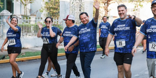 Mérida, Yucatán, a 23 de junio de 2025.- El Gobernador Joaquín Díaz Mena dio el disparo de salida de la Carrera Canaco Servytur–Grupo Orve, que reunió a más de 500 participantes para fomentar la actividad física y la unión familiar en Yucatán.