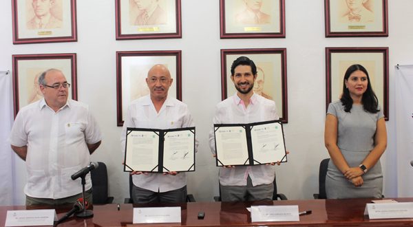 Desde el Salón de Rectores, ubicado en el Edificio Central de la máxima casa de estudios de la entidad, el titular de la dependencia, Antonio González Blanco, y el rector de la UADY, José de Jesús Williams, firmaron el acuerdo que establece las bases para la cooperación académica y científica entre las partes.