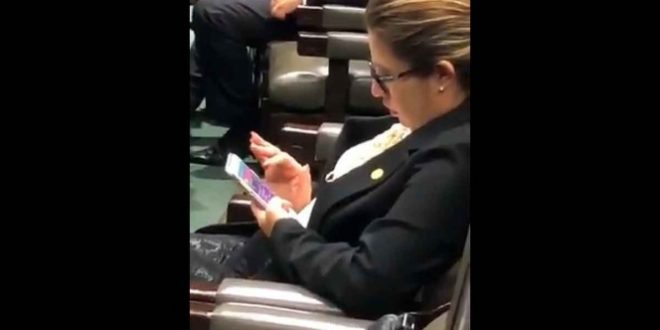 Nelly Maceda Carrera, diputada de Morena, fue captada jugando en su teléfono celular mientras se discutía en el pleno la Ley de Prisión Preventiva.