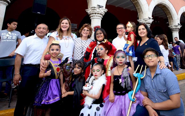La alcaldesa María Fritz Sierra presenció el festejo infantil junto a su esposo, Jorge Estrada Áviles, su hija Alejandrina Estrada, nuera Susana Vidal y nietos Luna, Emiliano y Romina para disfrutar con los meridanos de un espectáculo que fomenta la unión familiar.