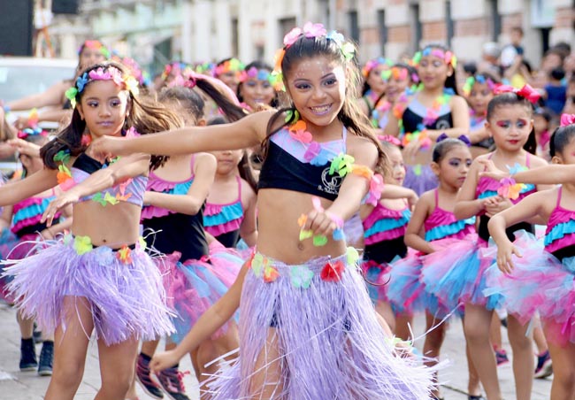 Elementos de la Policía Municipal acompañaron a los pequeños, garantizando que los pequeños, acompañantes y maestros ejecutaran sus coreografías sin inconvenientes. Al ser las playas del mundo el tema del Carnaval 2018, los ritmos caribeños y colores amarillo, azul, verde y fucsia cubrieron las calles del Centro Histórico, logrando que los asistentes sintieran que se encontraban en las playas yucatecas o de Río de Janeiro.