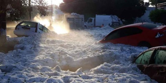 En algunos puntos, el hielo incluso sepultó a los automóviles, mientras que las tuberías de viviendas y comercios resultaron afectadas por la acumulación de granizo