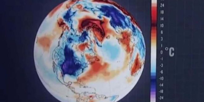 La anomalía en la temperatura es un factor clave, pues la masa ártica que actualmente se está registrando en Canadá, Estados Unidos y el Norte de México, está entre 10 y 20 grados por debajo de la temperatura normal. En el gráfico mostrado se observa que a diferencia de lo que ocurre en Norteamérica, Groenlandia registra un aumento en su temperatura de entre 10 y 20 grados, haciendo que el lugar que normalmente es de clima gélido se caliente lentamente.