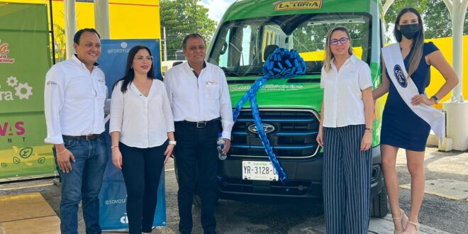 Con la presencia de Edith Valdez García – Asesora de Ventas de Ford Yucatán, Mireille Alamilla González – Gerente de Ventas de Ford Yucatán, el Sr. Freddy Ortiz Rodríguez – Director de Grupo La Lupita y Fernando Faller – Gerente General de Ford Yucatán; se presentó una de las nuevas unidades E-Transit 2022, que será destinada a las operaciones de distribución de los productos, como muestra de la próxima adquisición de otras unidades.
