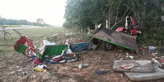 El hecho tuvo lugar a las 17 horas de la tarde; cuando los peregrinos procedentes de Kanasín, se dirigían a Chekubul, en Ciudad del Carmen, en un mototaxi donde llevaban además sus bicicletas.