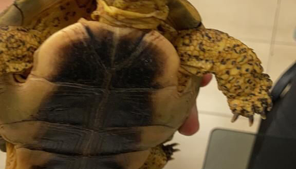 MÉRIDA, Yuc., 20 de noviembre 2021.- Una tortuga terrestre, que pretendía ser transportada en una caja de cartón, dentro de una maleta, desde el Aeropuerto de Mérida Yucatán a Monterrey, Nuevo León, fue rescatada por elementos de la Guardia Nacional (GN).