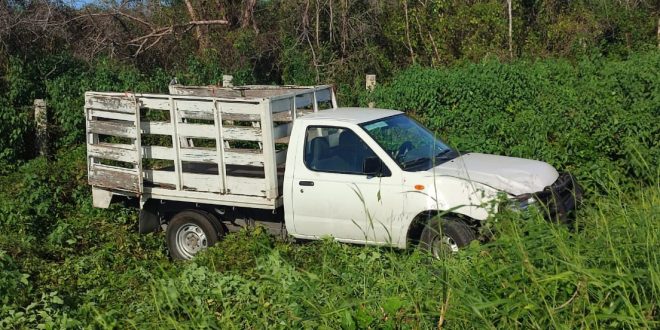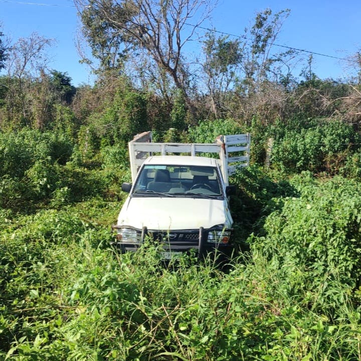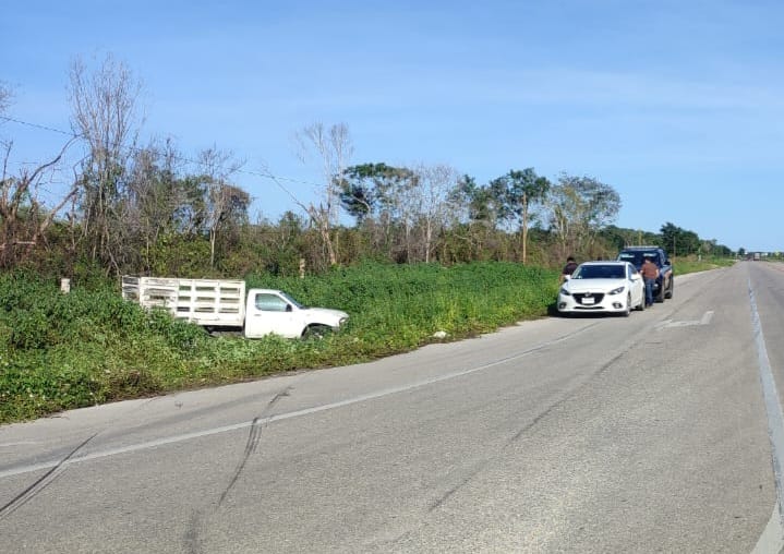 Hunucmá, Yuc., a 4 de diciembre.- El conductor de una camioneta Nissan estaquitas hizo una maniobra de rebase, pero al ver que venía de frente otro vehículo terminó sacrificando para salirse de la vía federal Mérida-Tetiz.