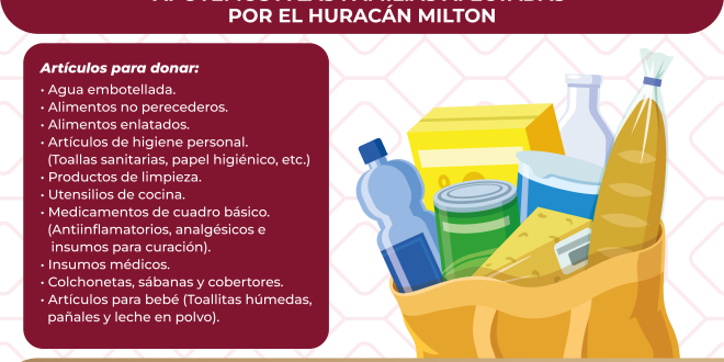 • Del 9 al 16 de octubre, se estarán recibiendo donativos en el Centro de Acopio en el edificio central del Sistema DIF Yucatán.