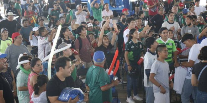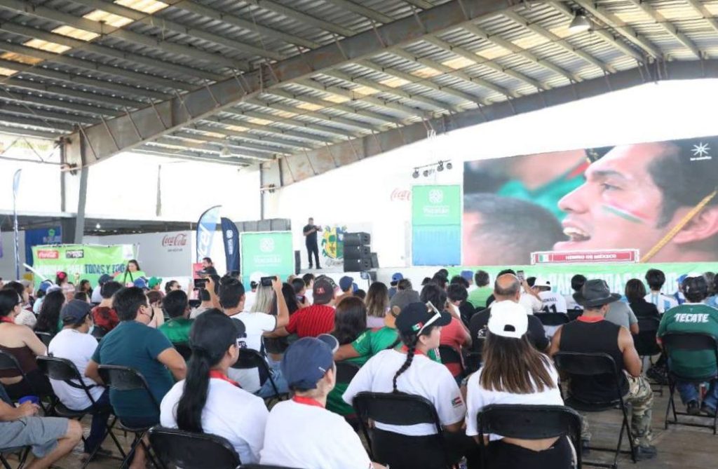 En la sede relucieron las banderas de México, globos, sombreros mexicanos, trompetas y no faltaron las porras apoyando a los representantes de México que se encontraban en la cancha, como parte del entusiasmo que se comparte con el “Mundial para Todas y Todos”.