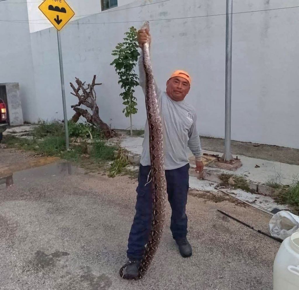 CONKAL, Yuc., 20 de septiembre 2025.- Habitantes de un predio en Conkal, encontraron una enorme boa de poco más de dos metros de largo, y para deshacerse de ella tuvieron que pedir apoyo de las autoridades.