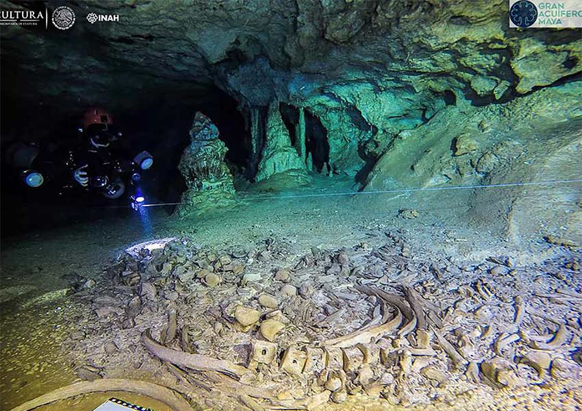 Por otro lado, en diversos sitios localizados en Sac Actun se observan fragmentos óseos humanos que corresponderían varios a individuos con miles de años de antigüedad.