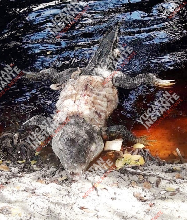 Hunucmá, Yuc., 15 de noviembre de 2019.- En otro hecho indignante de maltrato animal vecinos de la comisaría de Sisal, hallaron un enorme cocodrilo moreletti desollado y muerto dentro su hábitat en el lugar conocido como “Laguna de cocodrilo”, exactamente frente al refugio pesquero, esta tarde.