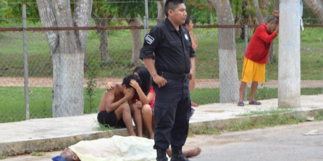 Tizimín.— Un hombre falleció ayer viernes en la tarde en plena vía, justo frente la escuela “Teresa de Ávila”, aunque aún no se sabe si murió arrollado por un vehículo o por una congestión alcohólica, debido a que el fallecido era un conocido integrante del llamado “escuadrón de la muerte”.