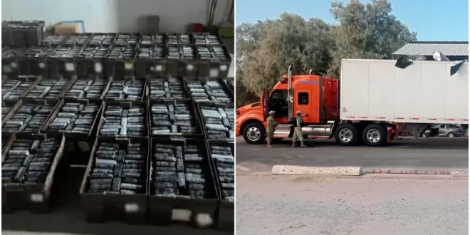 Durante las labores de seguridad, los efectivos detectaron un tractocamión acoplado a una caja seca. Al realizar la inspección correspondiente, notaron irregularidades y modificaciones en la parte del techo de la caja, lo que motivó una revisión minuciosa del vehículo.