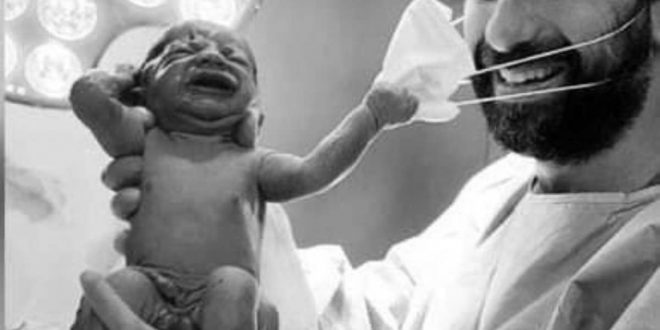 “Símbolo de “esperanza” Este es Samer Cheaib, ginecólogo de Dubai. Publicó esta foto con un recién nacido en los primeros momentos de su vida – el pequeño trató de quitarse la máscara de la cara El médico escribió: Todos estamos esperando la señal quitar las máscaras y volver a la rutina”, se compartió en redes sociales.