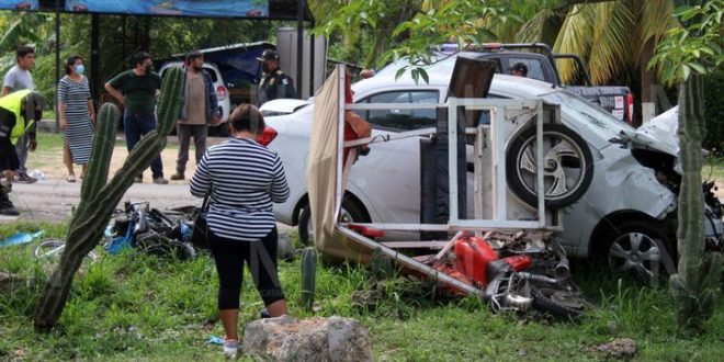 MÉRIDA, Yuc.- Esta mañana, la hermana de la alcaldesa de Conkal, Julia “N”, al volante de un Beat ocasionó un fuerte accidente en el municipio, que dejó cuatro lesionados y una persona fallecida, además de que intentó huir del lugar de los hechos al sentirse ‘influyente’.