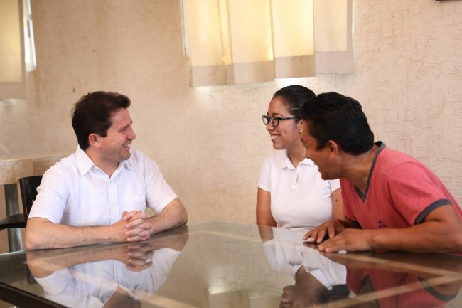 Mérida, Yucatán.- Las herramientas tecnológicas aprovechadas en la educación para potenciar el talento de la juventud yucateca deben continuar, afirmó Julio Can Cuevas, padre de familia, quien recibió la visita del precandidato del PRI a la gubernatura del estado, Mauricio Sahuí Rivero.
