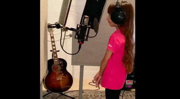 En las imágenes se ve a Mikaela, hija del cantante Luis Fonsi y la modelo Águeda López, interpretando de forma emotiva la canción We are the world.