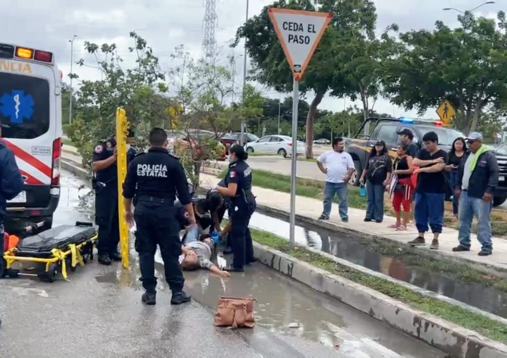 Mérida, Yuc., a 21 de junio 2024.- Por cruzar corriendo una avenida frente a la plaza Gran Santa Fe, de Ciudad Caucel, una señora fue atropellada por un automovilista, sufriendo serias lesiones que ameritaron su traslado de volada a un hospital.