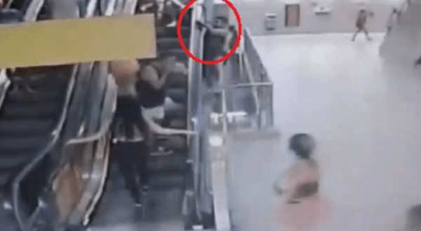 Las cámaras de vigilancia ubicadas en la estación Copilco grabaron el momento del accidente y en ellos se aprecia como el hombre queda colgado de las escaleras eléctricas y cae un piso más abajo.