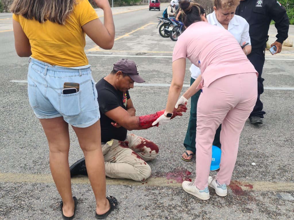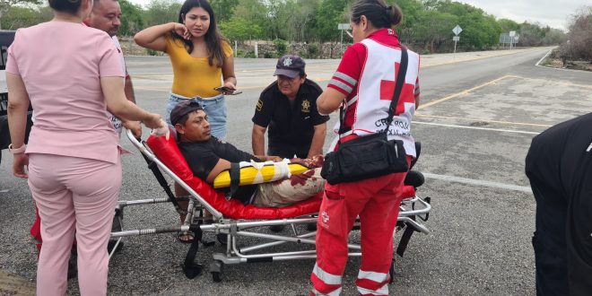 De entrada ambos se salvaron de ser aplastados, pero el acompañante de la moto vecino de la comisaría de San Pedro Noh Pat de Kanasín, sufrió una herida avulsiva en el brazo derecho.