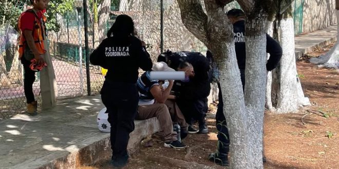 Al lugar arribaron paramédicos de la Cruz Roja y elementos de la Policía Municipal, quienes encontraron al hombre sentado sobre la banqueta quien ya era auxiliado por sus compañeros.