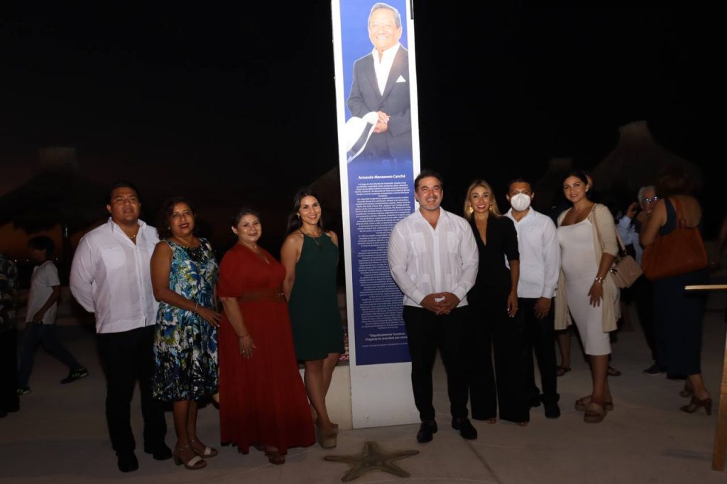 Progreso, 9 de julio. – A manera de homenaje, el alcalde Julián Zacarías Curi, quien estuvo acompañado de autoridades estatales y representantes culturales, develó la “Estrella de Mar” del reconocido cantautor yucateco Armando Manzanero.