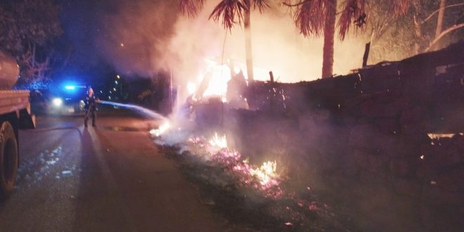 Federico Azul/ Yucatán al Instante Kinchil, Yuc., 12 de mayo 2023.- La presunta quema de basura fue suficiente para que las chispas alcancen unas palmas de huano de la albarrada y desate una sucursal del averno en una endeble bodega situada por la calle 23 por 18 y 20, del …