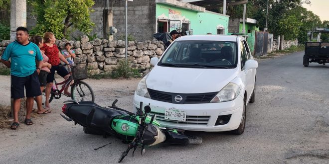 Federico Azul/Yucatán al Instante Kinchil, Yuc., a 04 de octubre 2022.- Dos hermanos que circulaban a bordo de su motocicleta fueron impactados por un vehículo, luego de volarse un alto de disco “fantasma” de la calle 27 por 18. Efraín Huchim (a) “Bachá” manejaba su caballo de acero 150 cc. …