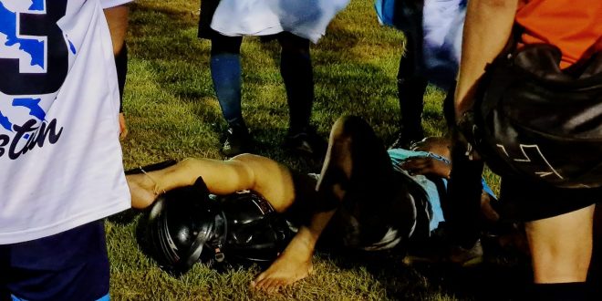 Federrico Azul/ Yucatán al Instante Kinchil, Yuc., 30 de septiembre 2022.- Como sí estuvieran jugando una final, dos futbolistas contrarios se dieron con todo para quedar ambos lesionados; sacando la peor parte el teticeño Eduviges Poot Aké (a) “Huero”. La noche de ayer Fisheros de Tetiz se enfrentaba a Sporting …