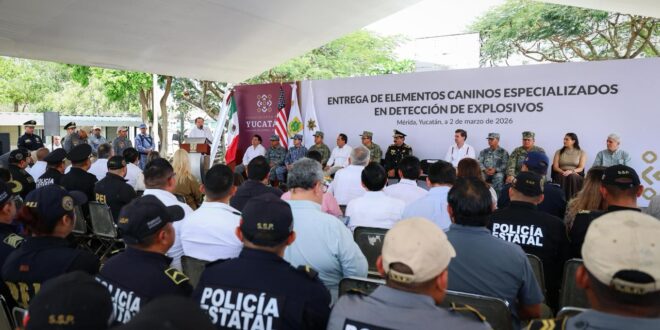 Como parte de la cooperación con Estados Unidos, la Secretaría de Seguridad Pública incorporó nuevos binomios caninos para detección de explosivos, fortaleciendo acciones preventivas y operativas en la protección de las familias yucatecas. Mérida, Yucatán, a 2 de marzo de 2026.- Para fortalecer la detección de explosivos y la capacidad …