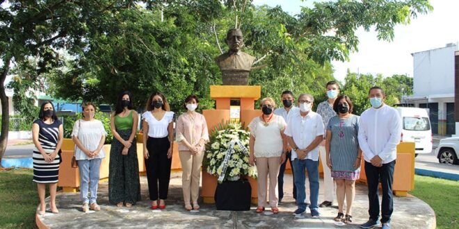 Esta actividad, organizada por la dependencia estatal, se efectuó frente al busto del ilustre personaje, ubicado en un parque de la colonia Pensiones; donde también asistieron sus sobrinos Arturo Abreu Noh y Bertha Abreu Espinosa; sus sobrinos nietos Andrés Ermilo y Nelly Abreu Rendón; así como su sobrina política Nelly Rendón Viuda de Abreu.