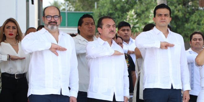 En esta ceremonia participaron la escolta y banda de guerra de la Dirección de Seguridad Pública y Tránsito de Progreso.