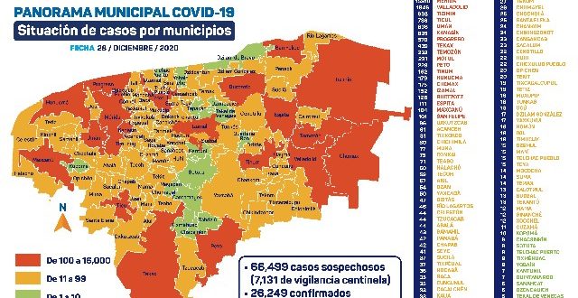 Mérida, Yucatán, 28 de diciembre de 2020.- Este es el parte médico de este lunes 28 de diciembre: Como hemos señalado, en la reapertura económica los datos más importantes son la ocupación hospitalaria y los ingresos diarios. El día de hoy tenemos 183 pacientes en hospitales públicos. 22,511 pacientes ya se recuperaron: no presentan síntomas ni pueden contagiar. Esta cifra representa el 85% del total de contagios registrados, que son 26,249. Hoy se detectaron 65 nuevos contagios de Coronavirus.