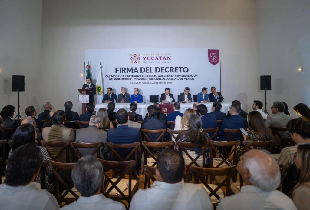 Ciudad de México, a 23 de abril de 2026.- El Gobernador Joaquín Díaz Mena firmó el Decreto de Modificación y Actualización de la Representación del Gobierno de Yucatán en la Ciudad de México, una decisión estratégica orientada a fortalecer la capacidad institucional del estado, mejorar la coordinación con actores clave a nivel nacional y consolidar su presencia en los espacios donde se toman las grandes decisiones del país.