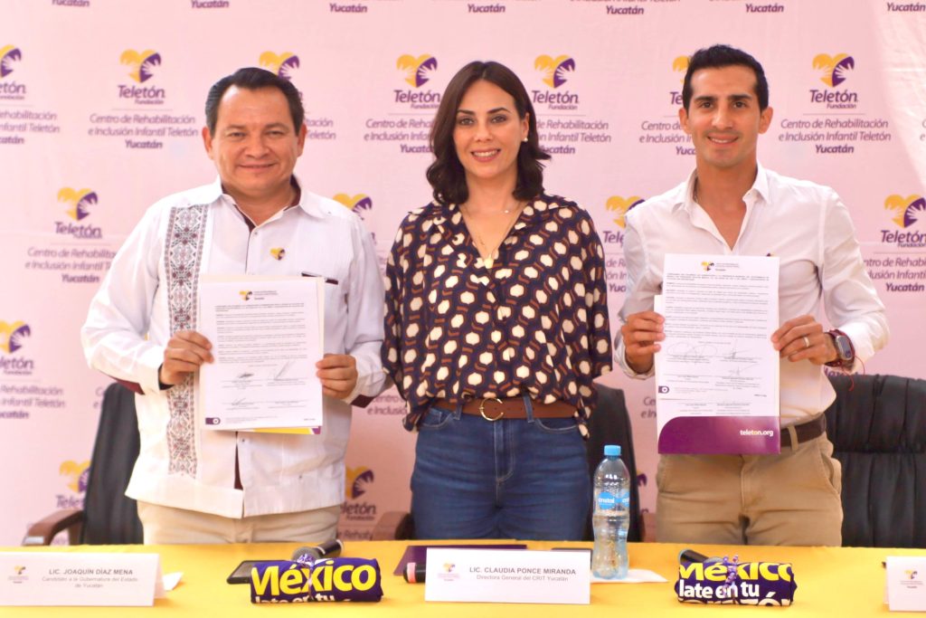 MÉRIDA, Yuc., 22 de mayo 2024.- Los candidatos a la gubernatura de Yucatán, Joaquín “Huacho” Díaz Mena y a la alcaldía de Mérida, Rommel Pacheco, firmaron carta compromiso con el Centro de Rehabilitación e Inclusión Infantil Teletón (CRIT) Yucatán, para garantizar que promoverán estrategias a favor de las niñas, niños y jóvenes con discapacidad del estado.