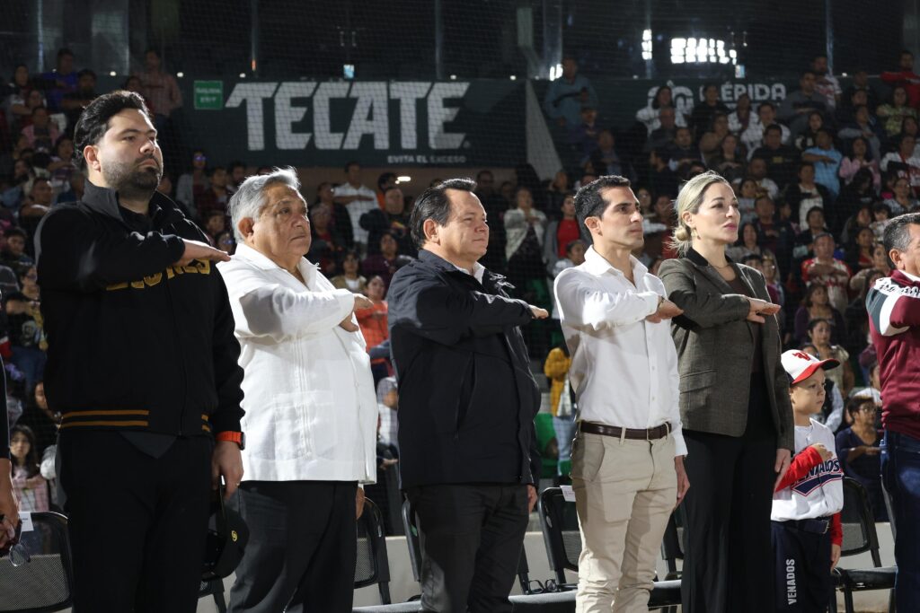 Posteriormente, el Gobernador y el Titular de la CONADE también encabezaron la ceremonia de inauguración en el Parque de Béisbol Kukulcán Álamo, con la asistencia de dos mil ochocientas personas.