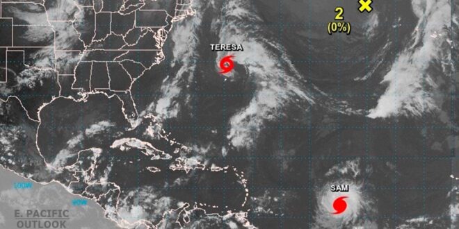 El huracán Sam podría ganar fuerza este sábado hasta convertirse en un peligroso meteoro mientras que la tormenta subtropical Teresa se debilitaba y podría disiparse el domingo, según los meteorólogos.