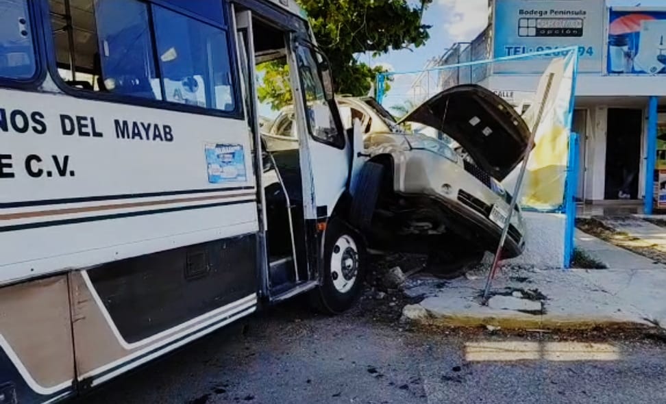 Impactante choque entre una camioneta y un autobús en Mérida
