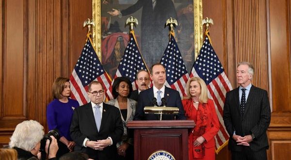 En conferencia de prensa, los demócratas adelantaron que Trump dañó la seguridad nacional en beneficio de sus intereses personales. Argumentaron que Trump ignoró y lastimó el interés público.