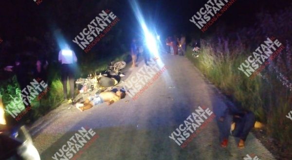 Maxcanú, Yuc., 19 de octubre de 2019.- Un fuerte impacto entre dos motocicletas, registrado la noche de ayer viernes en la vía intercomisarías de Maxcanú (Kochol – Chunchucmil), dejó como saldo un muerto y tres lesionados, dos de ellos, graves.