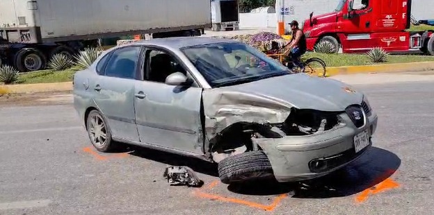 UMÁN, Yuc., 25 de octubre 2023.- Dos vehículos se dieron con todo en la carretera Mérida-Umán, a la altura del fraccionamiento San Lorenzo, luego de que una camioneta Volkswagen chocó contra un auto Córdoba, el cual le invadió el paso al tomar un retorno.