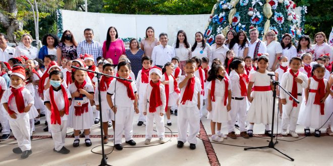 Mérida, Yucatán, a 21 de diciembre de 2022.- Para continuar fomentando la importancia de las artes musicales y escénicas en el desarrollo de los estudiantes desde temprana edad, la Coordinación de Educación Artística de Inicial y Preescolar presentó su tradicional “Concierto Navideño”, el cual estuvo integrado por una orquesta en vivo y 80 alumnos de ocho jardines de niños de Mérida.