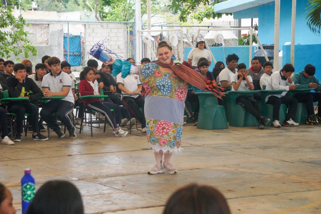 Para este fin, la Coordinación para la Prevención de la Violencia en la Educación Básica (CPREVI), con el apoyo de la Coordinación de Educación Artística, puso en marcha la obra de teatro “Paatikil, detente y respira” en la que los personajes: el Xix, X’Lucrecia, Laisy Tun y Kabaax, ejemplifican situaciones que ocurren en la vida cotidiana y explican como las redes de apoyo son importantes para brindar soporte emocional en momentos difíciles.