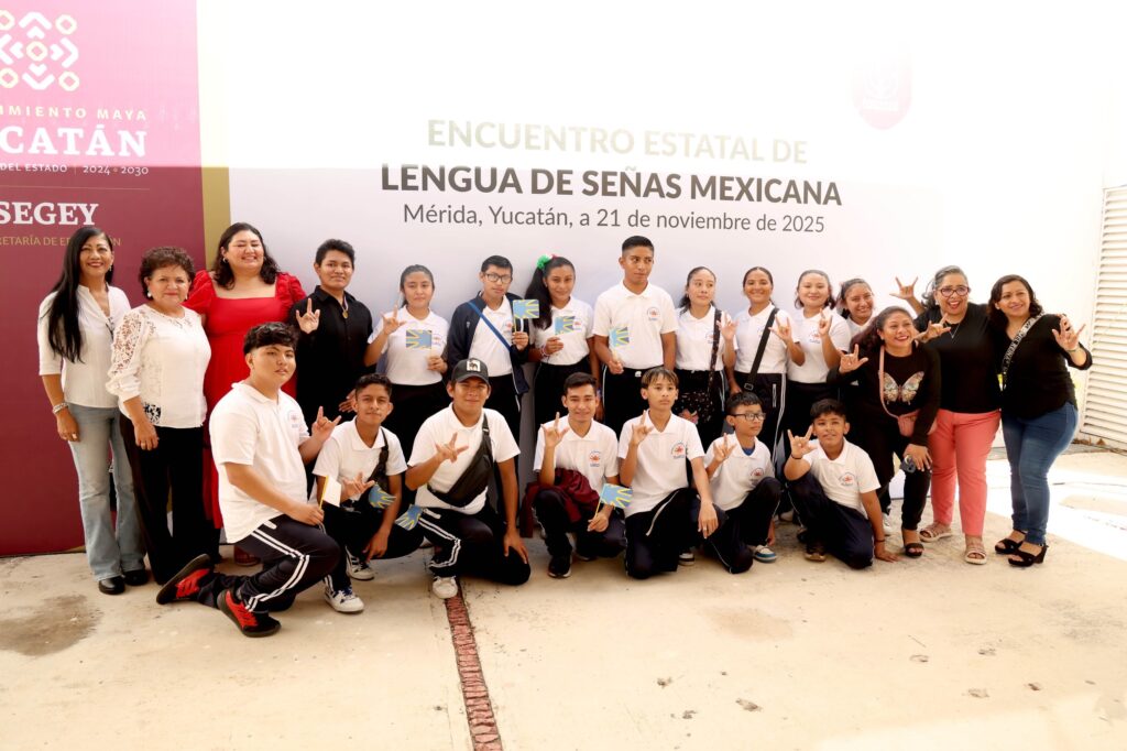 Mérida, Yucatán, a 21 de noviembre de 2025.- Para promover el aprendizaje y uso de la Lengua de Señas Mexicana (LSM) como medio de comunicación esencial y derecho lingüístico de las y los alumnos sordos, la Secretaría de Educación del Gobierno del Estado de Yucatán (Segey) realizó el Primer Encuentro Estatal de LSM, un espacio formativo y de convivencia dirigido a estudiantes, docentes, especialistas y familias.