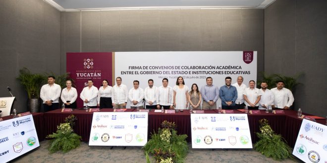 Desde el Centro Internacional de Congreso de Yucatán, Canché Cetz detalló que los convenios establecen un esquema tripartito para el pago de colegiaturas mensuales, en el que las universidades otorgan una beca del 30%, mientras que el Gobierno del Estado y las personas servidoras públicas cubren de manera equitativa el 70% restante, considerando el ingreso de cada colaboradora o colaborador.